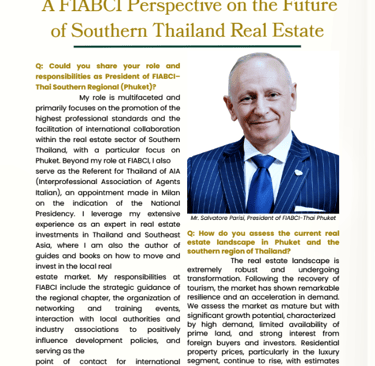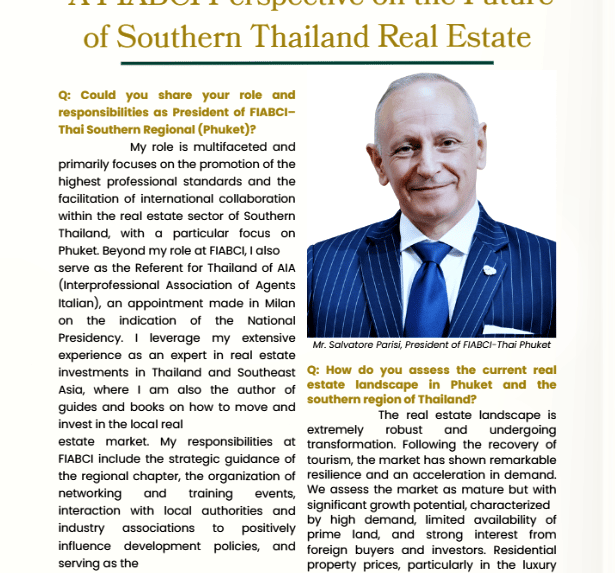 Salvatore Parisi (FIABCI-THAI Phuket / AIA): Featured among the leaders in Real Estate and Professional Services for his ability to integrate European ethical standards (AIA) with the territorial development of Phuket (FIABCI), promoting transparency in international investments.